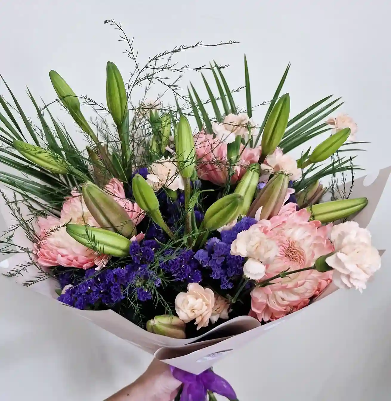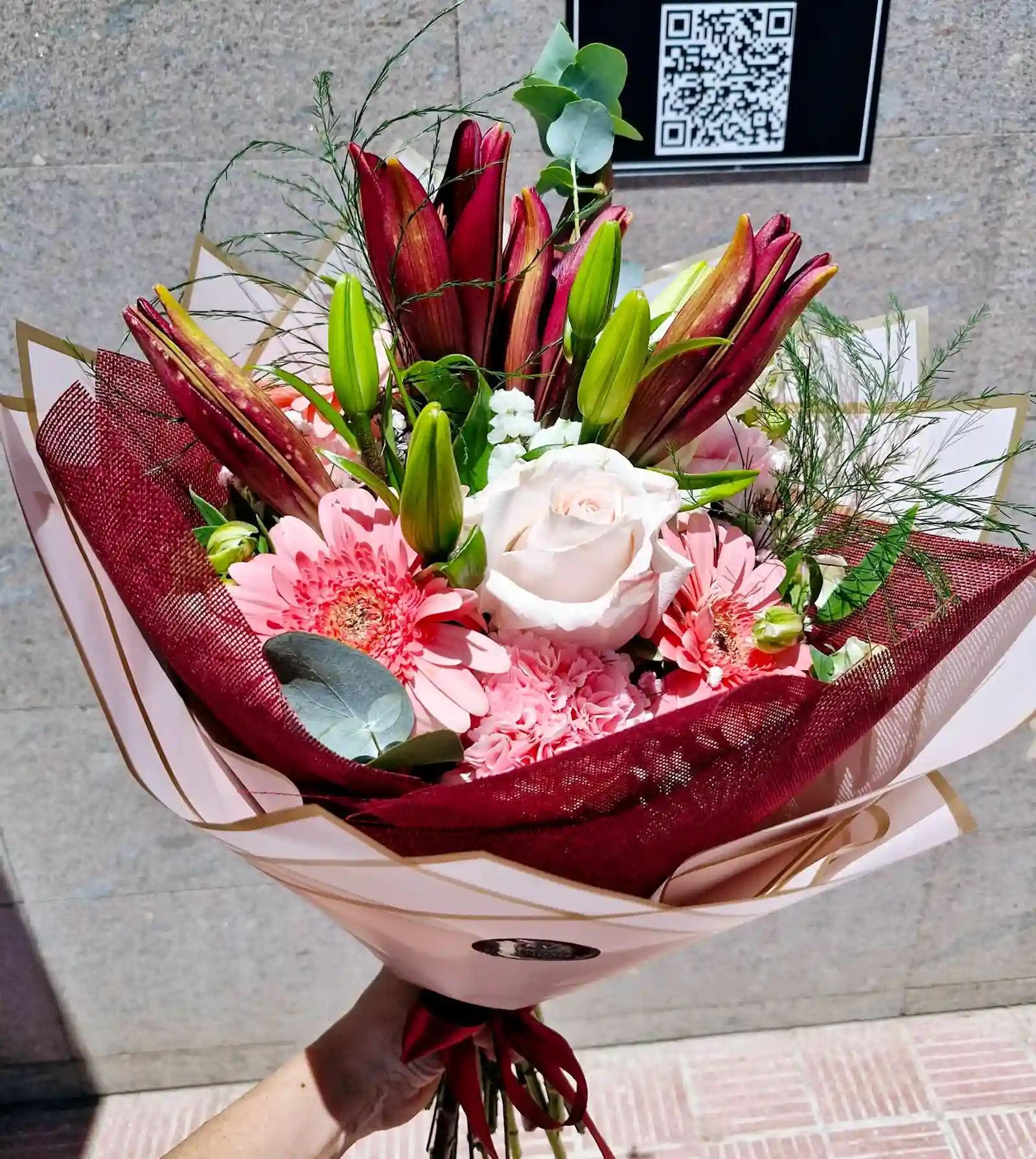 Ramo de flores frescas en tonos rosa, de estilo romántico y delicado. Diseñado para transmitir ternura y cercanía, perfecto para aniversarios, detalles especiales o para sorprender con un gesto dulce. Incluye envoltorio decorativo y lazo a juego.