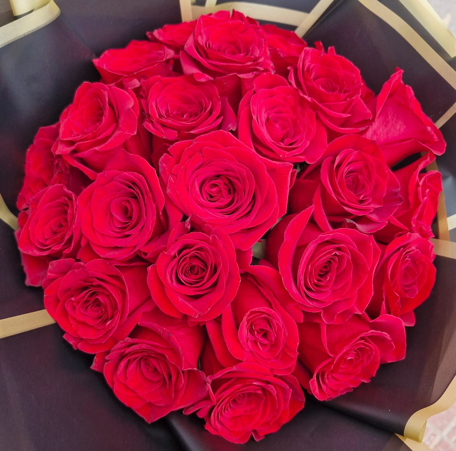 Ramo deluxe de rosas rojas de tallo largo, frescas y seleccionadas una a una. Presentadas en un papel decorativo elegante con acabados cuidados y lazo a tono. Ideal para declaraciones de amor, aniversarios o para sorprender con un detalle inolvidable